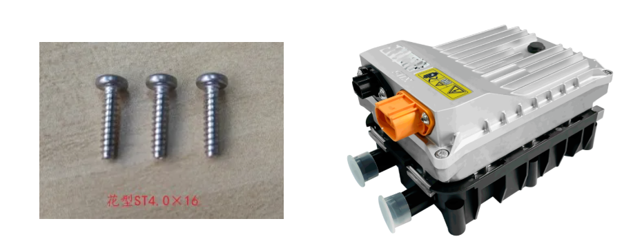 某頭部新能源車企在其新一代純電車中,採(cǎi)用高功率PTC加熱器,用於(yú)電池低溫預熱。該PTC加熱器共有4顆花型ST 4.0*16自攻螺絲鎖附,擰緊孔位下沉10mm進行擰緊作業。